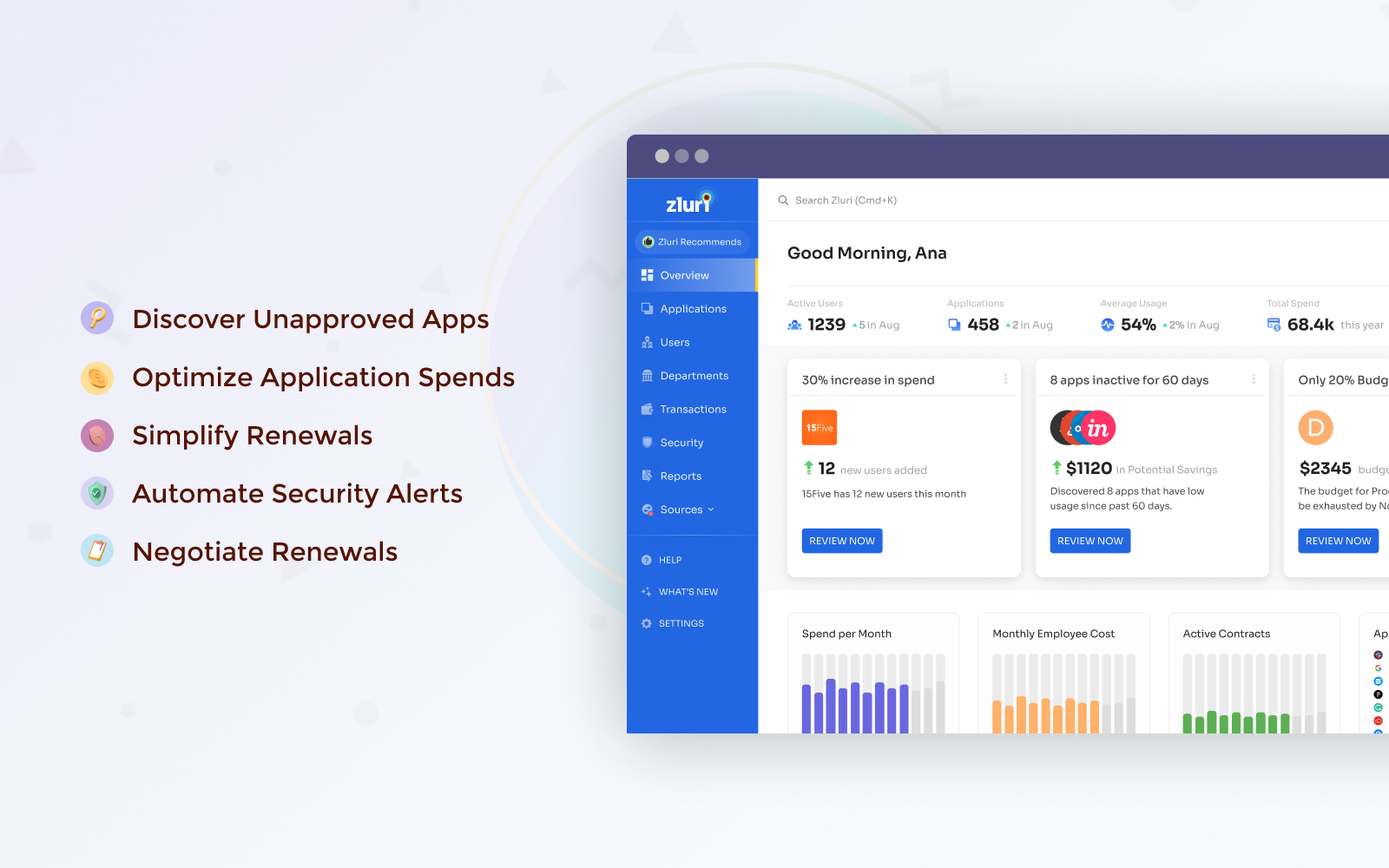 Zluri is a comprehensive SaaS management platform for enterprises. It enables IT teams to discover, manage, secure, and comply across multiple SaaS applications, all from a single dashboard.With direct integration with 15Five, you can easily track which users hold 15Five licenses, how frequently they use 15Five, and which features they are using. The Zluri + 15Five integration offers detailed usage and engagement metrics for each user in your organization. Also, you can manage license ownership and provision 15Five accounts for users.Key Features: