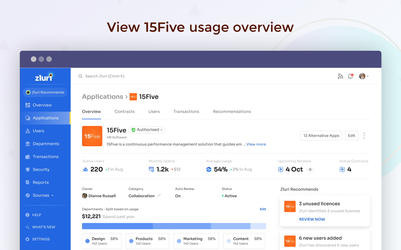 - Discover which users have 15Five licenses and manage them from Zluri's dashboard.