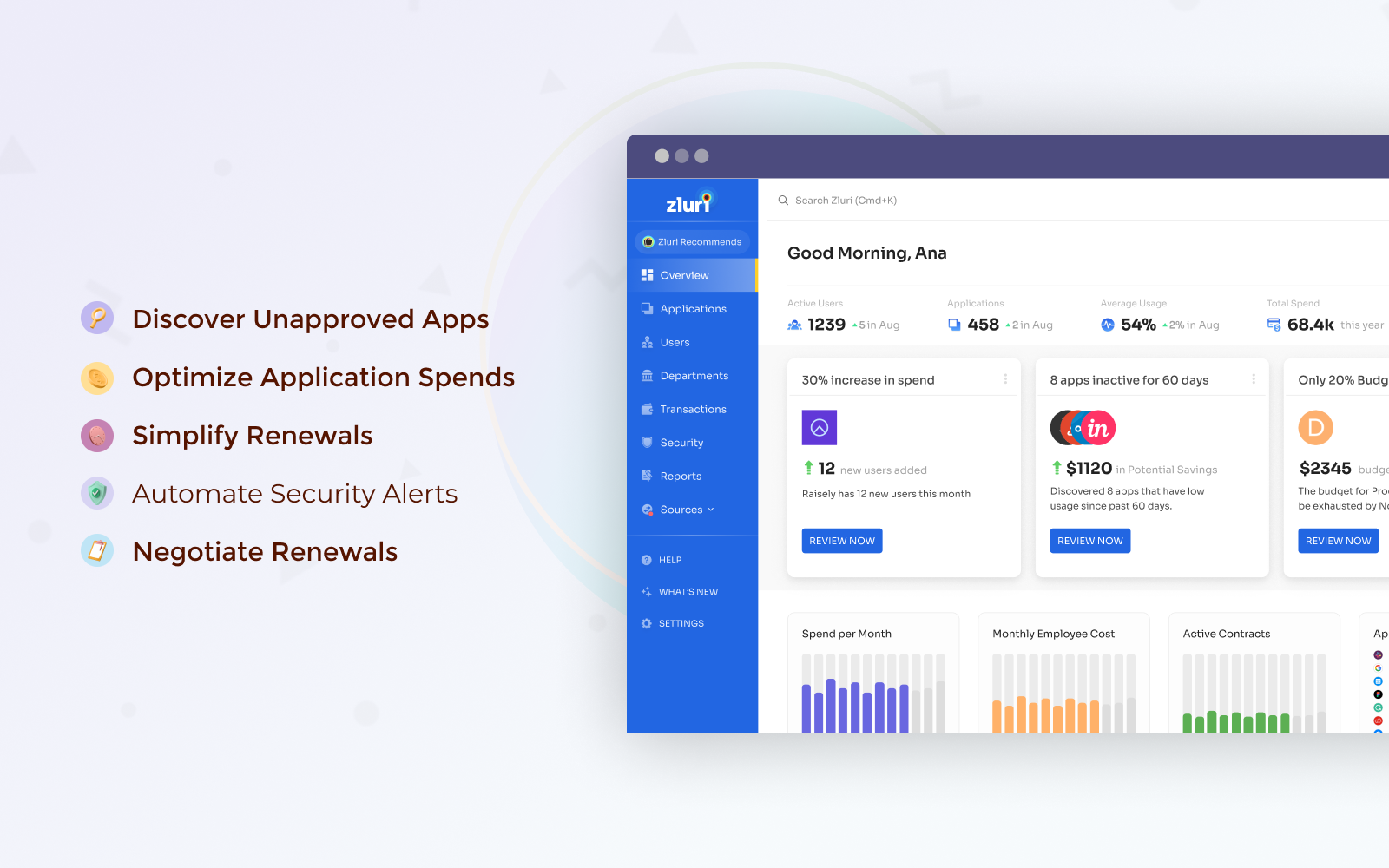 Zluri is a comprehensive SaaS Operations management platform for IT teams. It enables IT teams to discover, manage, secure, and comply across multiple SaaS applications, all from a single dashboard.With direct integration with Raisely, you can easily track which users hold Raisely licenses, how frequently they use Raisely, and which features they are using. The Zluri + Raisely integration offers detailed usage and engagement metrics for each user in your Raisely organization. Also, you can manage license ownership and provision Raisely accounts for users.Key Features: